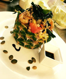 Tre le portate realizzate nel corso dell'aperitivo show-cooking e poi insegnate da Pam durante il corso serale: Tom Kha Gai, una zuppa di pollo e spezie al latte di cocco, una ricetta tipica della tradizione thai che può essere servita alternativamente come piatto unico e come antipasto; Kao Pad Kung Sapparot, nell'occasione preparato utilizzando i 3 tipi di riso presentati durante l'evento. Il Kao Pad Sapparot, ossia riso saltato con gamberi e ananas, insieme al Pad Thai è il piatto di bandiera della Thailandia, un po’ come la pasta al pomodoro per gli italiani. Essendo molto diffuso ne esistono diverse varianti. Mango sticky rice, tradizionale Thai dolce a base di riso glutinoso, mango fresco e latte di cocco. Anche se originario della Thailandia, il mango sticky rice viene consumata in tutta l'Indocina regione sud-est asiatico, tra cui il Laos, Cambogia e Vietnam. Di solito si mangia nella stagione di picco del mango, i mesi estivi di aprile e maggio in Thailandia. Un dolce poco dolce, molto particolare, che vi consiglio di provare una volta nella vita!