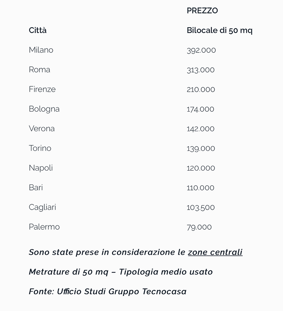 E questo in base alle analisi condotte dall’Ufficio Studi del Gruppo Tecnocasa spiegherebbe la contrazione della domanda di piccoli tagli a livello nazionale.